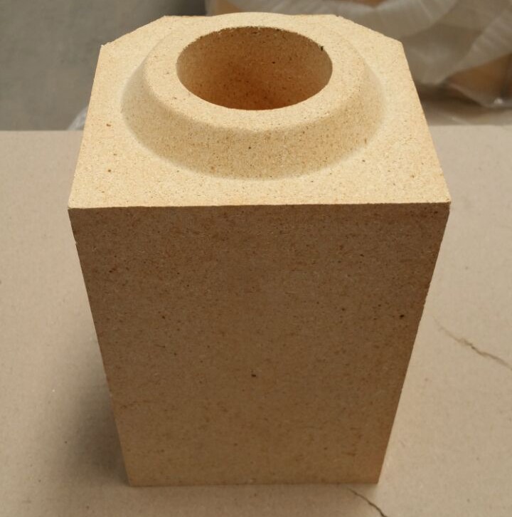 流鋼磚是砌在鑄錠用底板的溝槽內(nèi)連通分鋼磚和鋼錠模的中空耐火磚,俗稱湯道磚。產(chǎn)品一般為有多種規(guī)格的長方體形中空黏土磚。為減小鋼液流動過程中的阻力并防止漏鋼,要求流鋼磚內(nèi)孔光滑,外形規(guī)整,接縫嚴(yán)密。